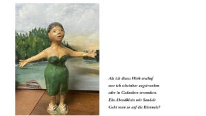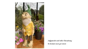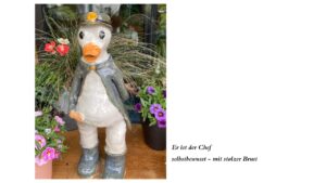 Nach Fertigstellung der Figuren gestalte ich eigene Texte, welche die Figur auch mit ihren evtl. Makeln und den Begebenheiten/ Geschichten ihres Schaffens widerspiegelt.